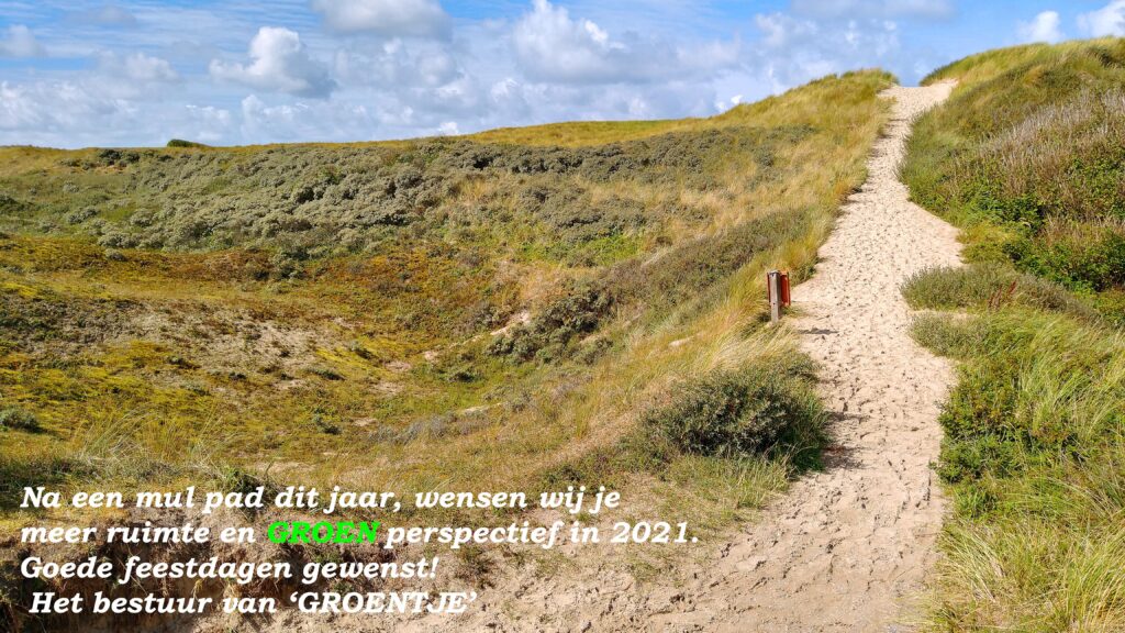 Wij wensen de bezoekers van onze website fijne kerstdagen en een goede jaarwisseling zonder vuurwerk. Het belangrijkste van alles: blijf gezond en doe in het nieuwe jaar samen met ons mee met activiteiten! Het bestuur van Milieu- en Natuurvereniging Groentje