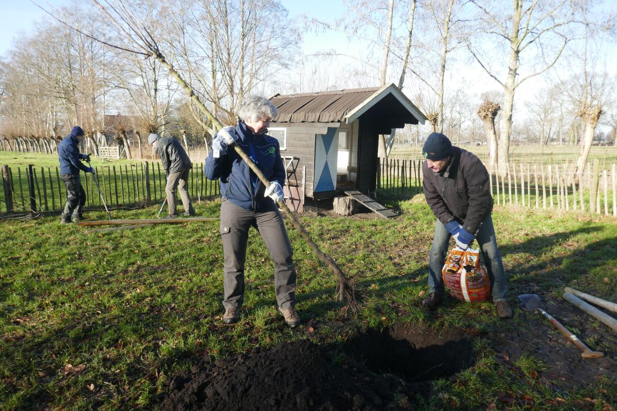 Vrijwilligers van Groentje hebben er 8 appel-, 6 peren-, 2 kersen- en 4 pruimenbomen aangeplant.